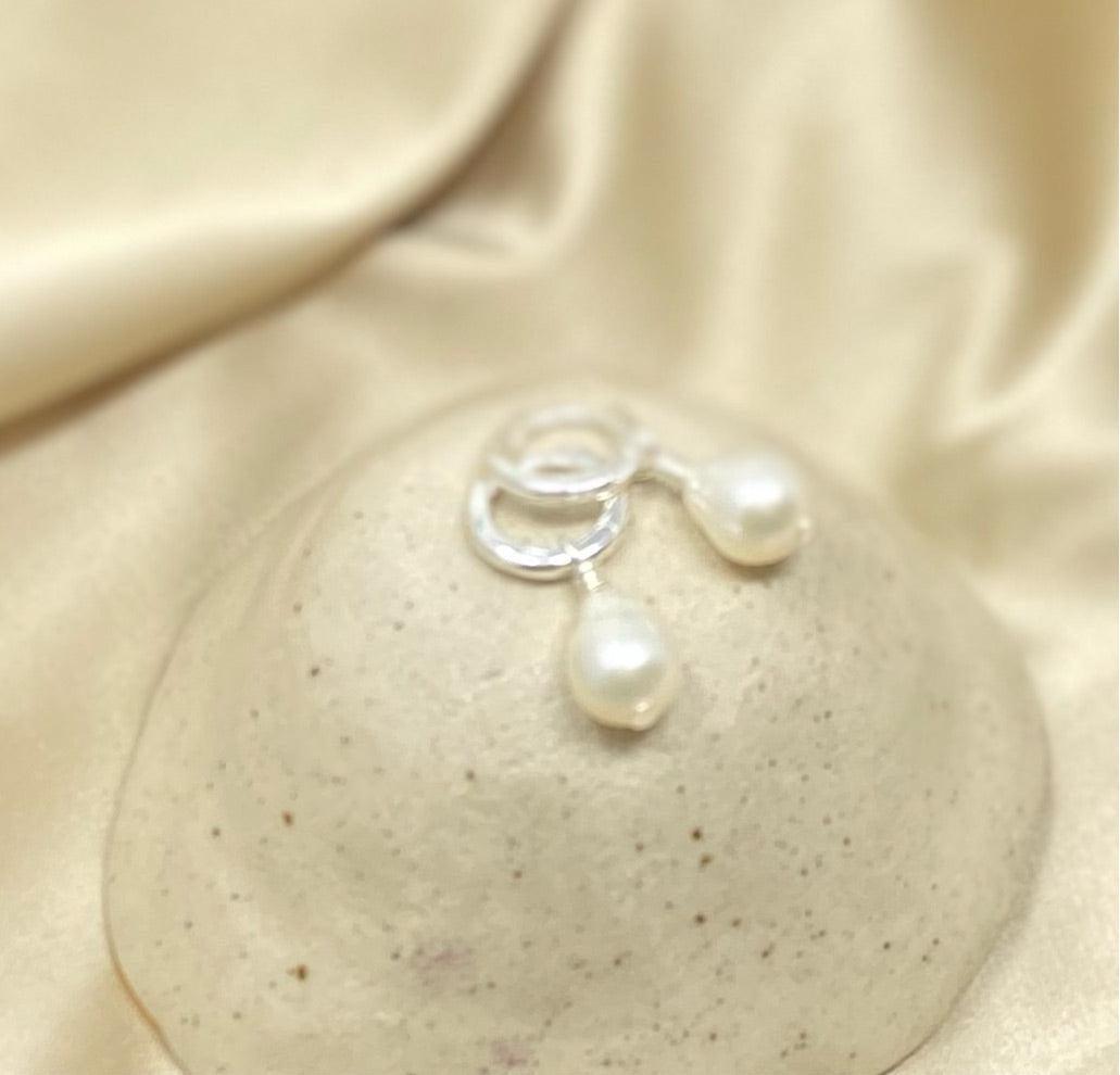 The hinged and slight hammered huggies are super easy to wear and they click into lock and stay put whilst you get on with your busy life. The teardrop shape of these cultured freshwater pearls adds extra femininity to your look.
