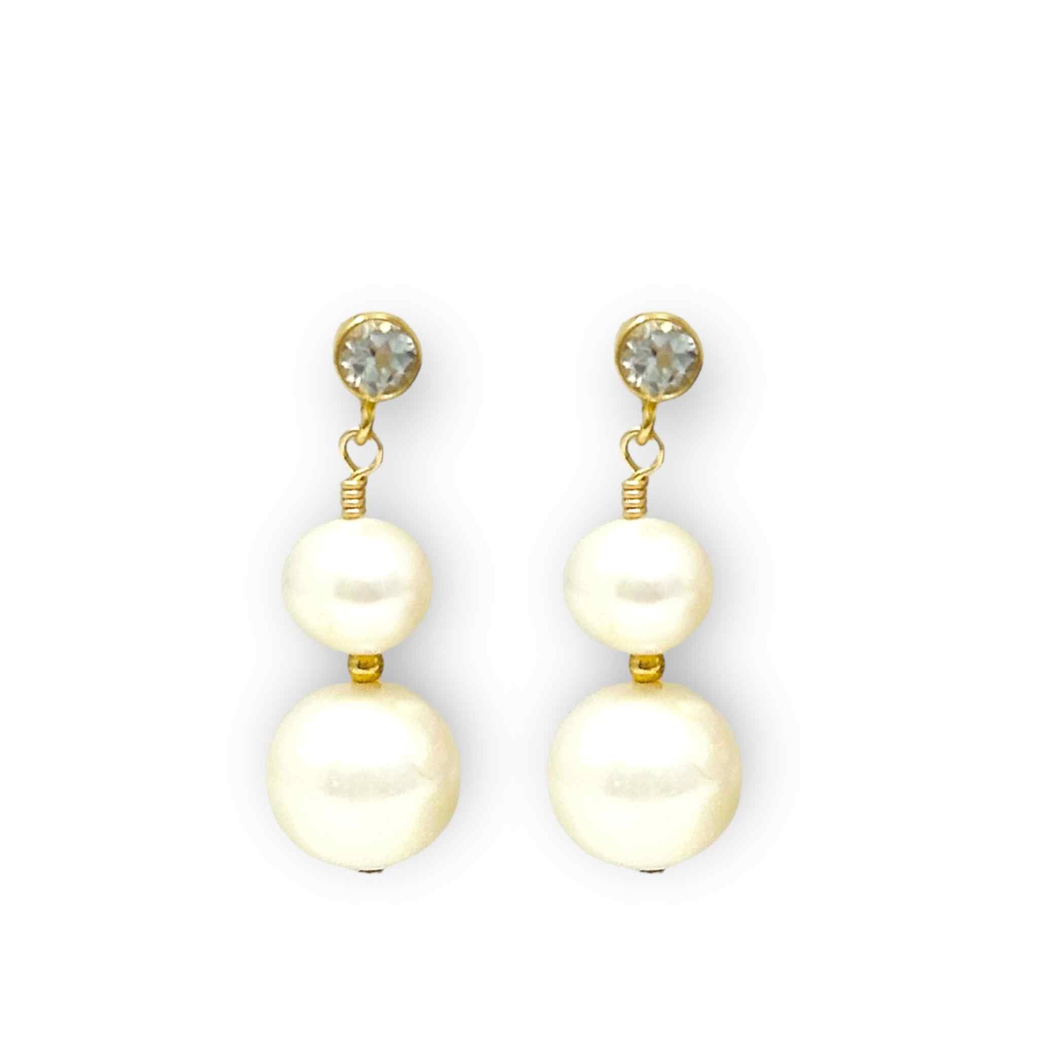 • Pearl Drop Earrings with white topaz, ear studs with scroll