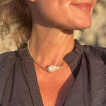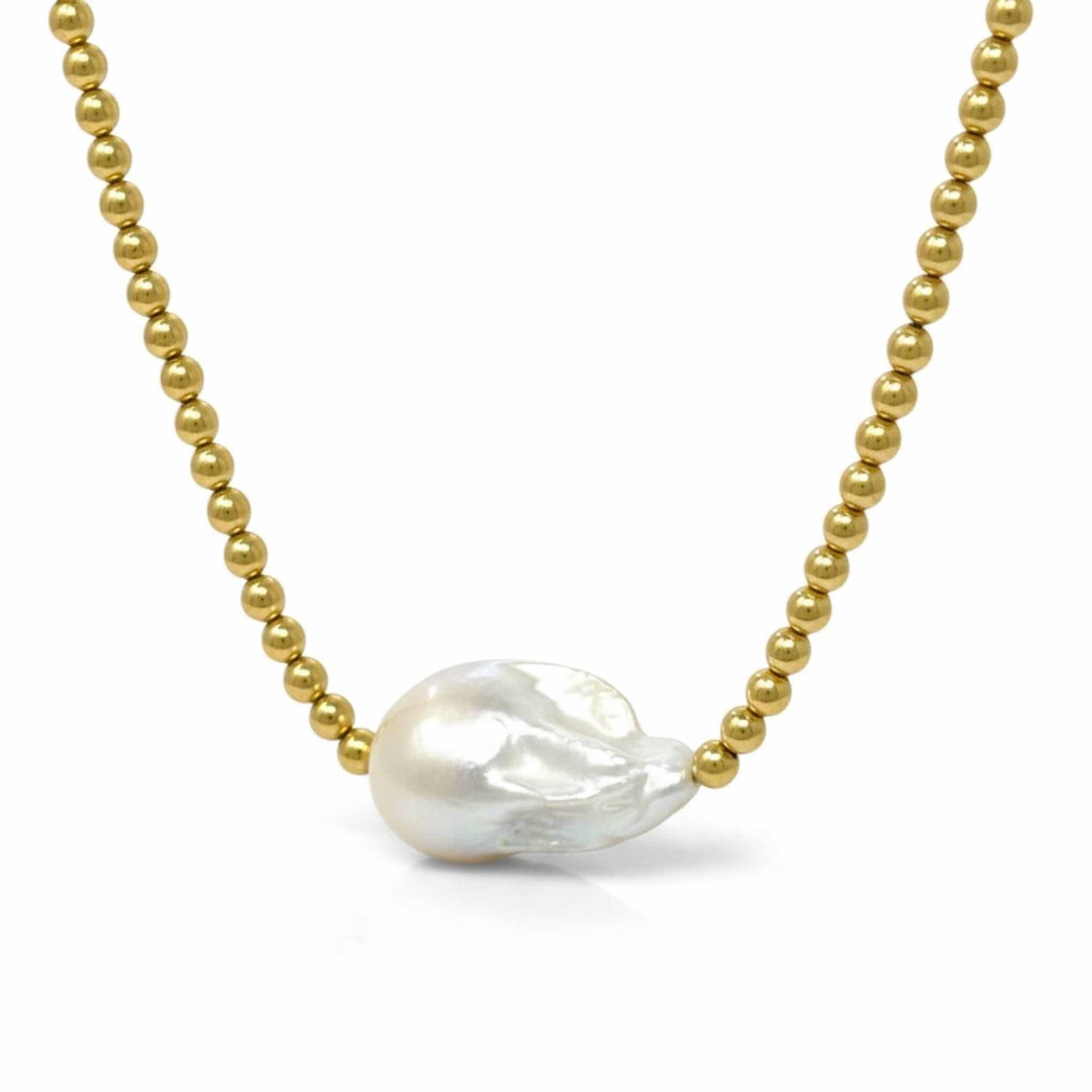 Stunning statement necklace, the new Big Baroque Pearl Gold Beaded Necklace is your go to necklace to make an entrance in style and elegance.