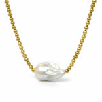 Big Baroque Pearl Gold Beaded Necklace
