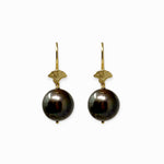 Gold Sea Shell Earrings with Brown Freshwater Pearls