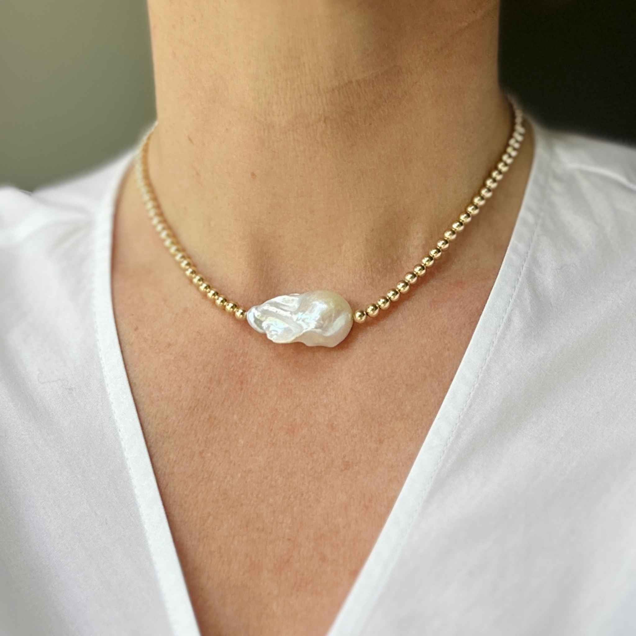 Pearls are classic and timeless. The Pearl Collection is a modern interpretation of this treasured gem. I handmade all designs myself with beautiful cultured dainty, keshi, and baroque freshwater pearls. Every pearl is different, just like the women who wear them, which ones are your favourite? The dainty pearl choker, the big baroque pearl earrings, or the feminine keshi pearls? - Most designs can be custom fitted