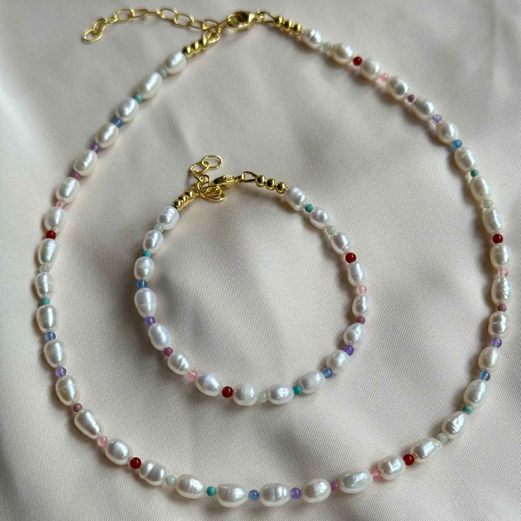 Wear it individually or stacked. Also check out the Boho Girly Pearl Necklace with a similar stone setting. If you want to learn more about real pearls, then check of the RAW Pearl Guide here.